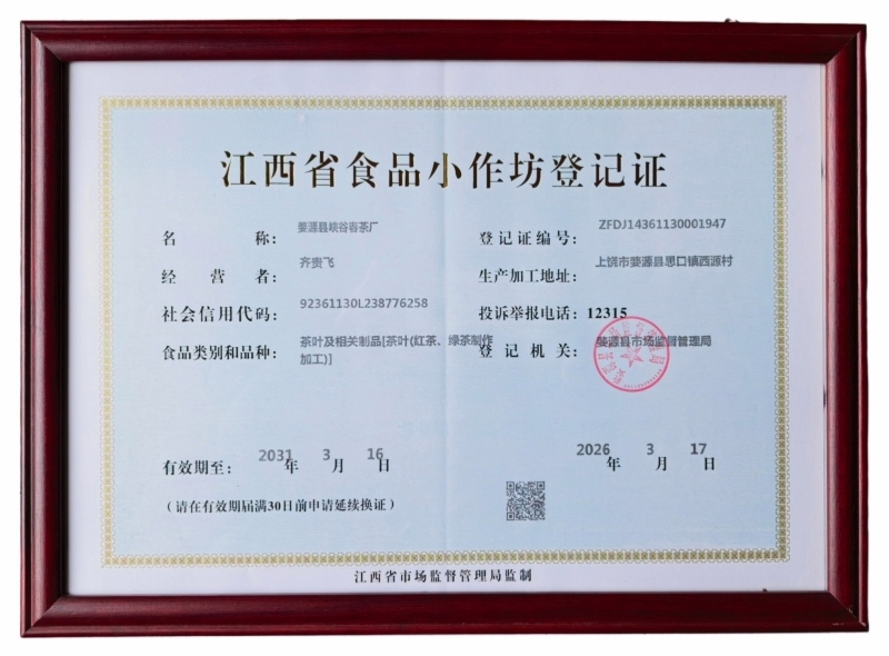 江西省食品小作坊登記證